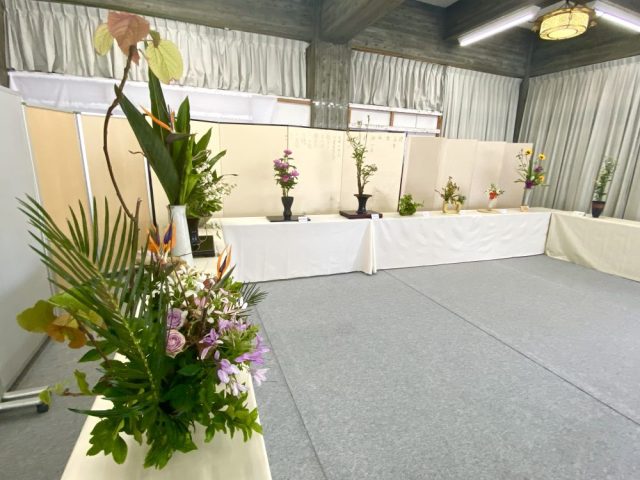 境内にある建物でこんな催しが。色とりどり。デザインのバリエーションがすばらしい〜。写真を撮りながら、のんびりいけばな鑑賞。