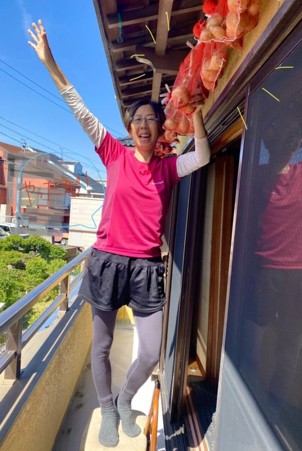 日々改良。一歩ずつ前進。これで物干し竿は、玉ねぎでいっぱいに。見ているだけで楽しい〜。無事に玉ねぎが完了したので