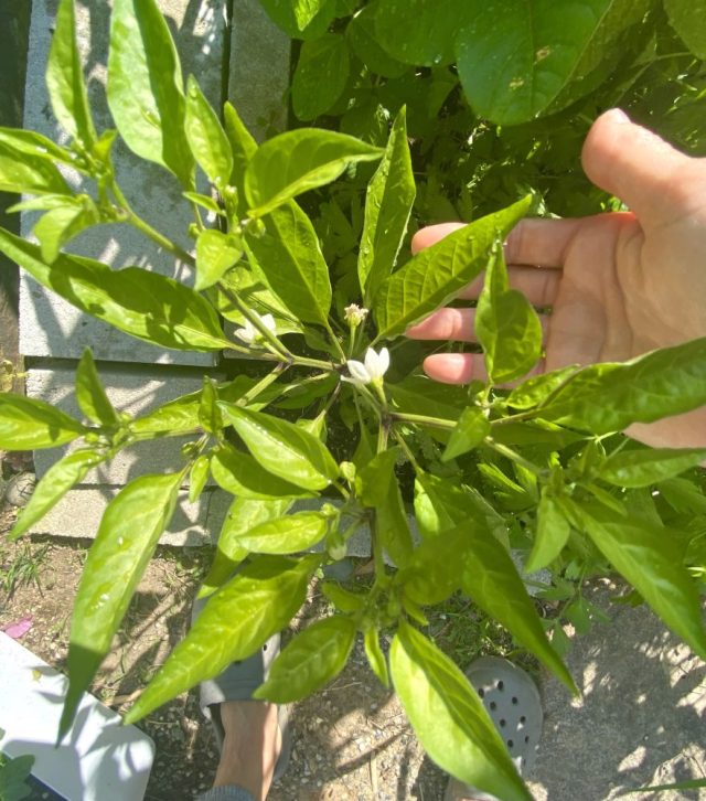 あとは手でひとつひとつ害虫を取り除く。畑は虫との闘いじゃー。何かいい方法はないものか。