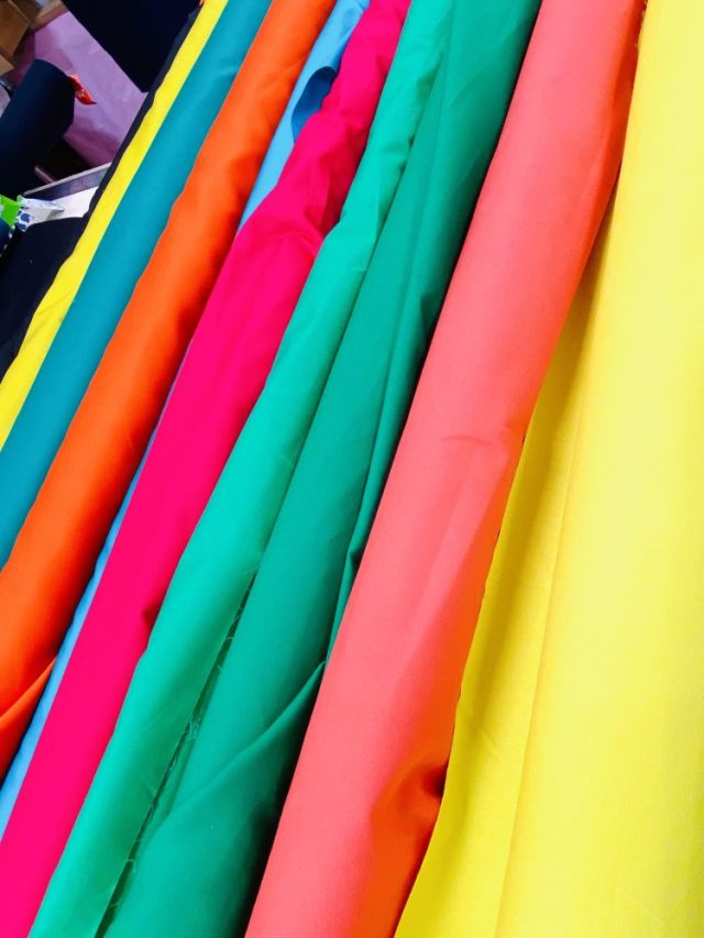 打合せ終了後、その足で布屋へ。名古屋といえば「大塚屋」。さっそく大量の布を購入。できるだけ安く、色だけで選ぶ(写真)。