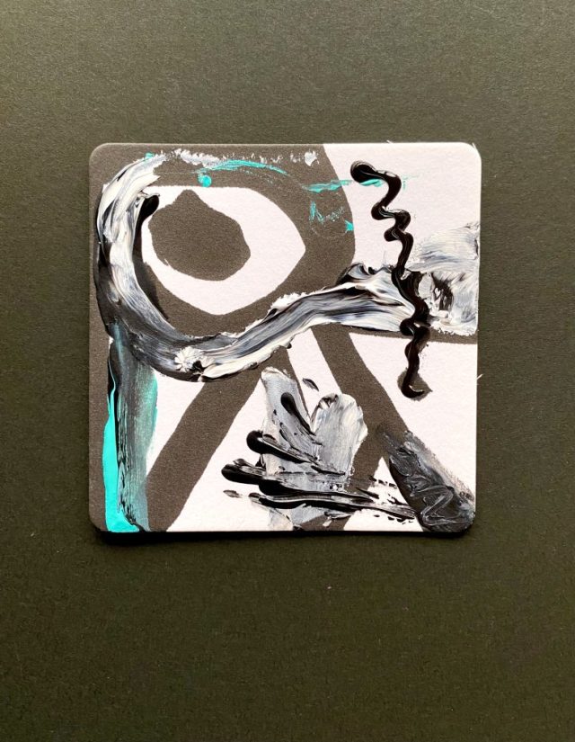 「PAZ(平穏)」文字。平和・平穏はとどまっていることではない。大いなる流れ、変化、熱いエネルギーの中にある。私にとって「PAZ(平穏)」は、静ではなく動。自らの青い炎を持っている。