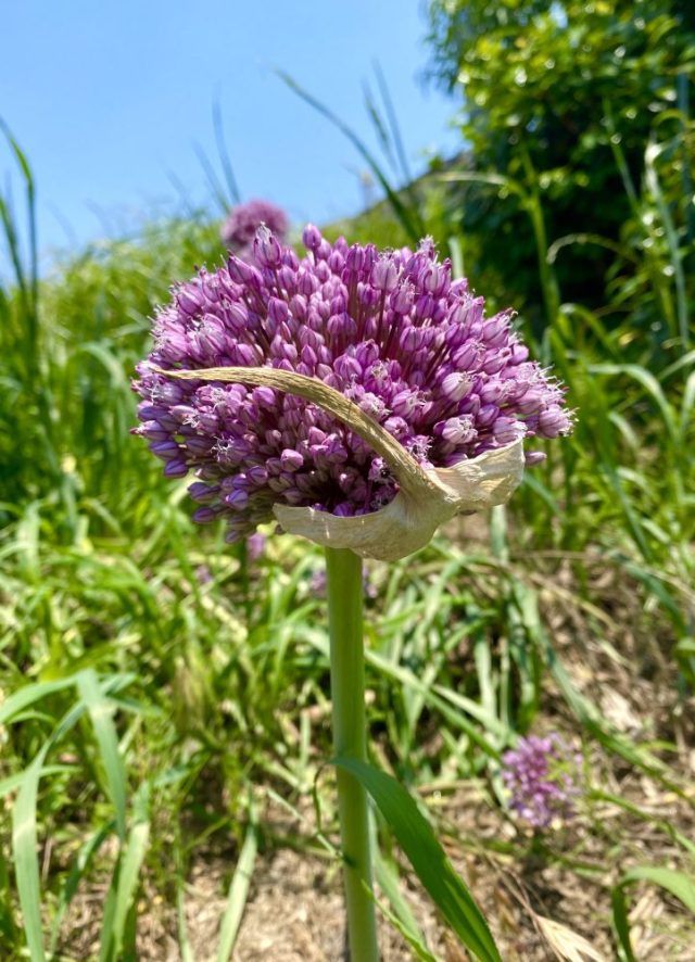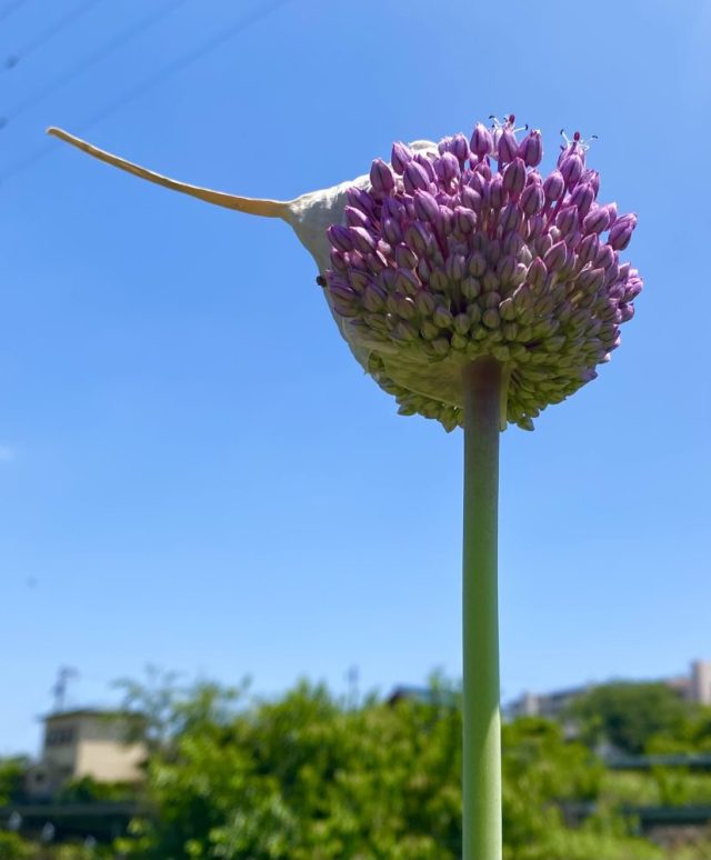 初心者レベルだからこれでいいのさ〜。後で聞いたら、ジョコビッチも使ってるメーカーらしい。ラケットを抱えて豊橋に帰ると、私を出迎えてくれたのは紫のぽんぽん花。