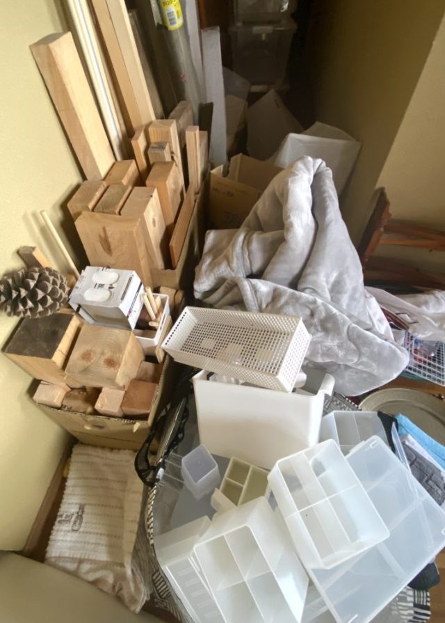 生まれ変わらせようという企画。まずは、ご覧ください(写真)。「シーズンオフのもの」「まだ使う可能性大」のものが、廊下までびっしり。