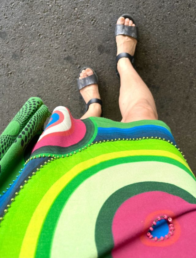 と思いつつ、本日もノースリーブに、膝上スカート(←スペインの「Desigual」という、カラフルな衣類で有名なメーカー)。そして、ベリーダンス教室へ。入ったとたん、仲間のみんなが、