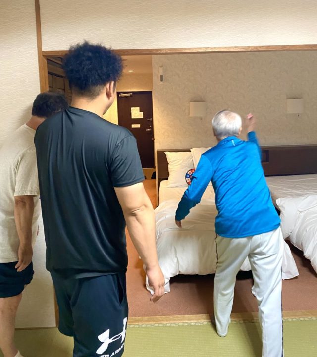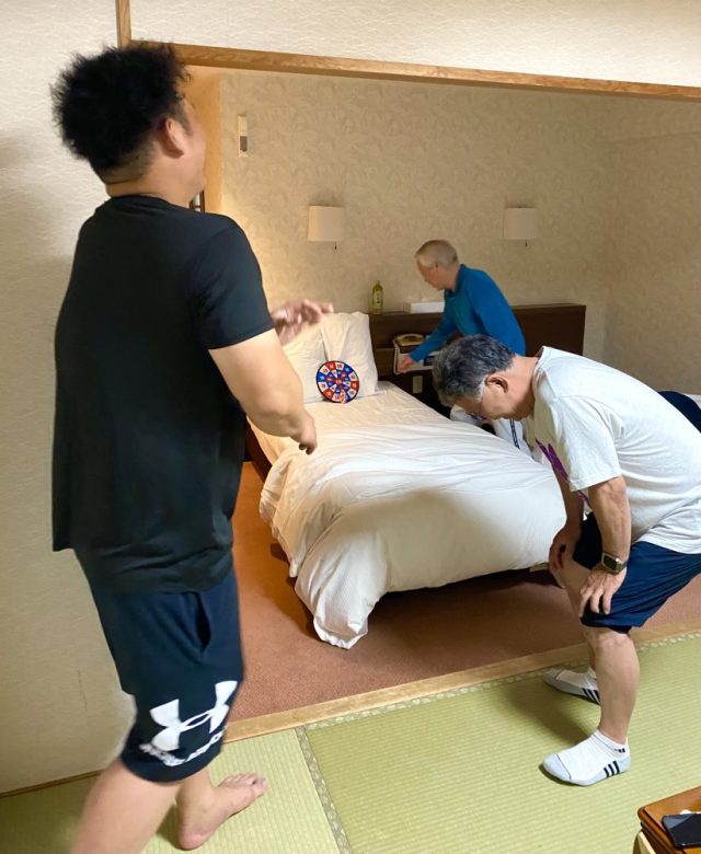 「楽しかったね」「そろそろ寝るか〜」「明日の朝食は何時に行く?」「7時?」「早すぎだよ〜。8時にしよう」「朝風呂も行きたいし」