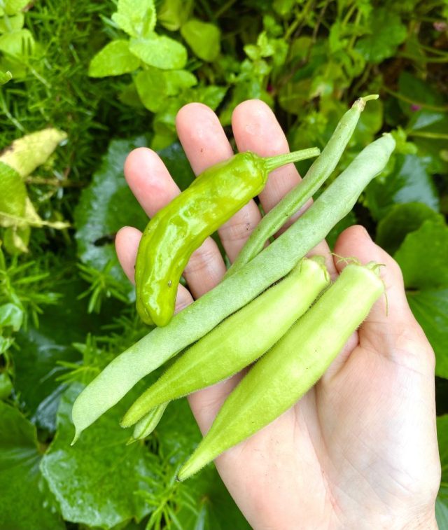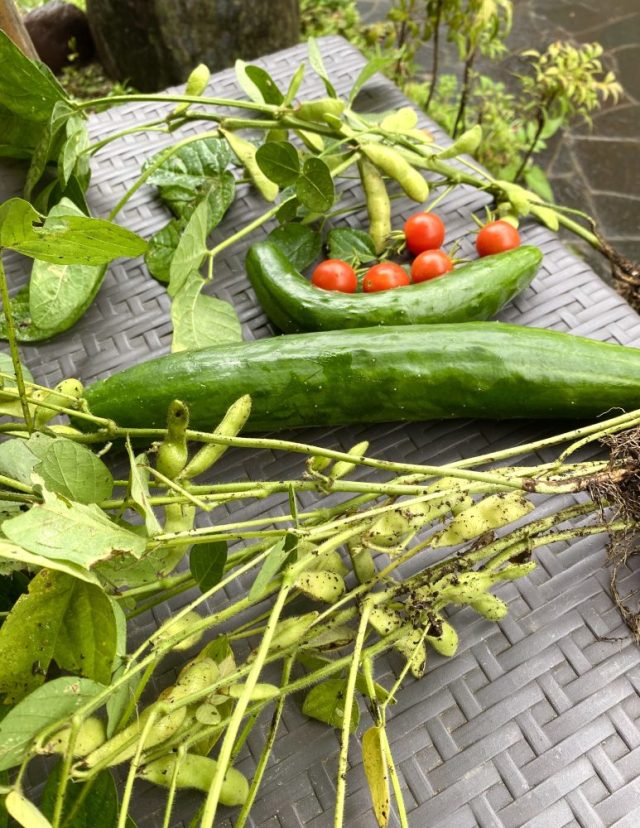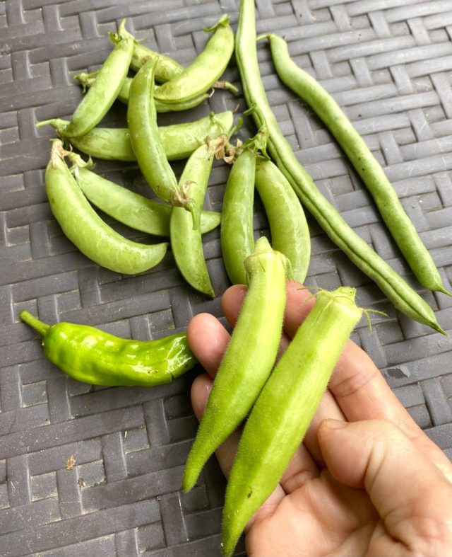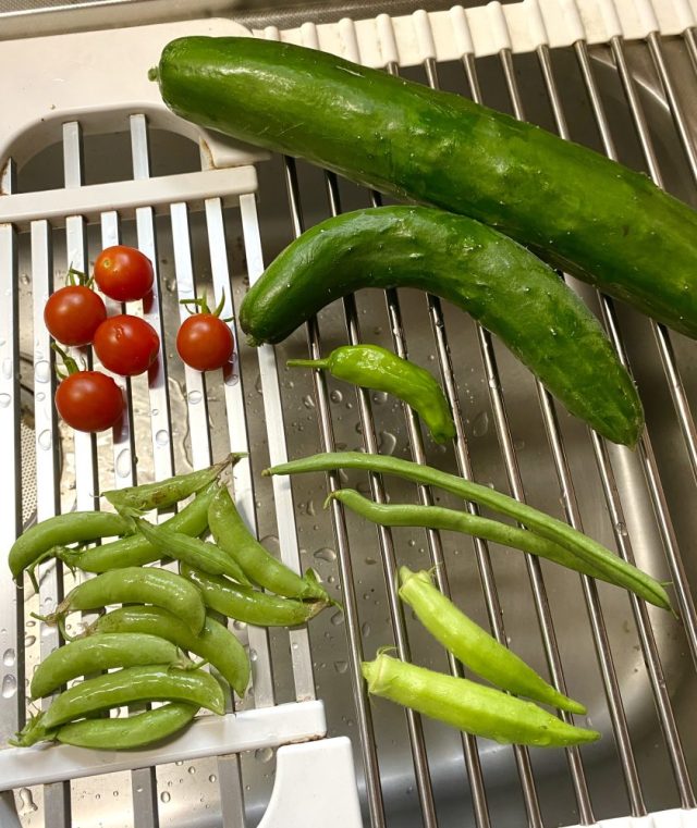 量は少ないけれど、ぽつぽついろいろできた方が順に食べていけるんだよね〜。オクラ、ししとう、いんげん、きゅうり、ミニトマト、枝豆・・・なんというバリエーション。