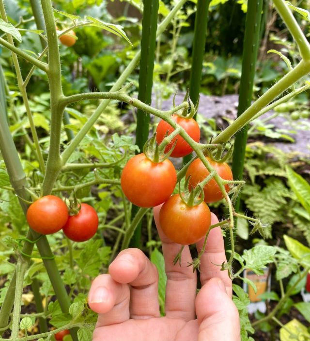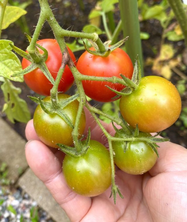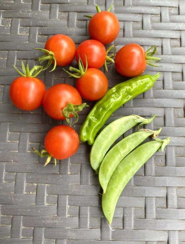 と思うと、うれしくて食べちゃうんだよね。あの小さな苗がここまで〜。とはいえ、庭に出ると「蚊」との闘いなので、早朝さささっと作業だけして家の中へ逃げ込む。そのせいか、