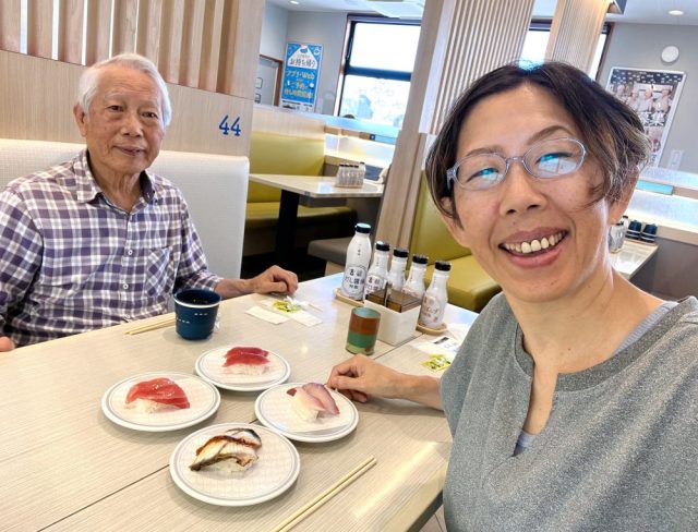父の誘いで、お手軽寿司ランチ。なんと500円引き。2人で1000円。ええっ、ワンコインランチなの⁉︎台所に立つのも暑いので、たまには冷房の中、外食もいいな。
