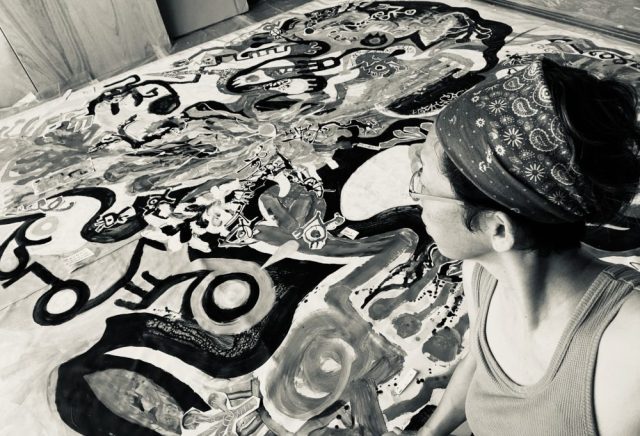 【一日一作プロジェクト】「大画2024」を制作中。いよいよ床で描いていた作品を、