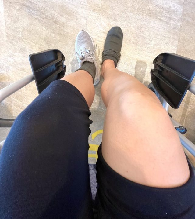 よく見れば、3人がかり。私のためにここまでしてくださるのだ。やるっきゃないやろ〜。パチンとスイッチが入り、集中モードに。松葉杖を体を一部と思え。杖と体を一体化させるのだ。成せばなる。