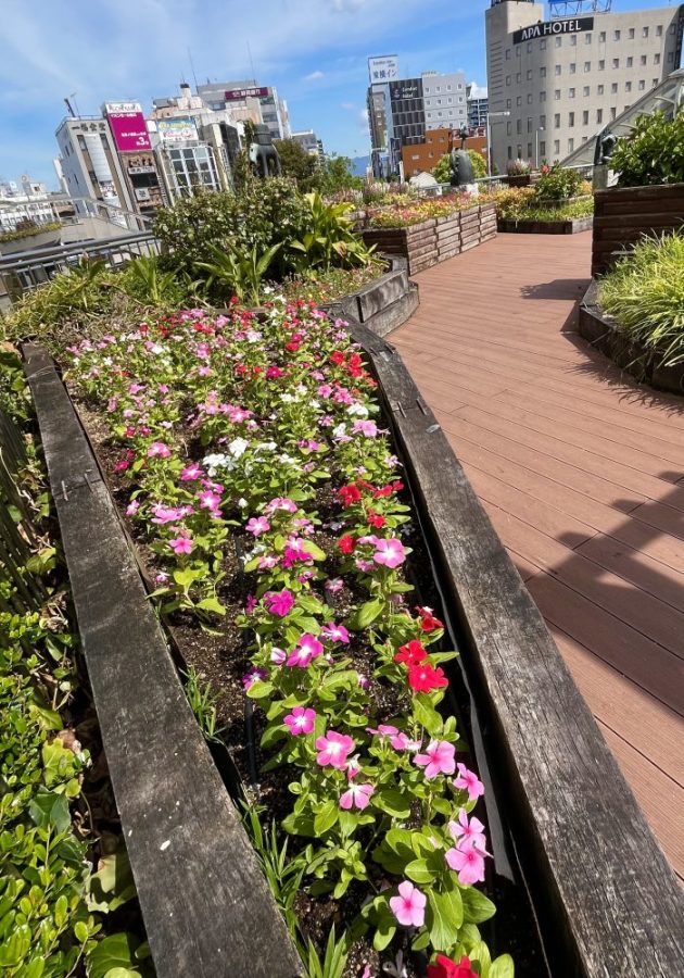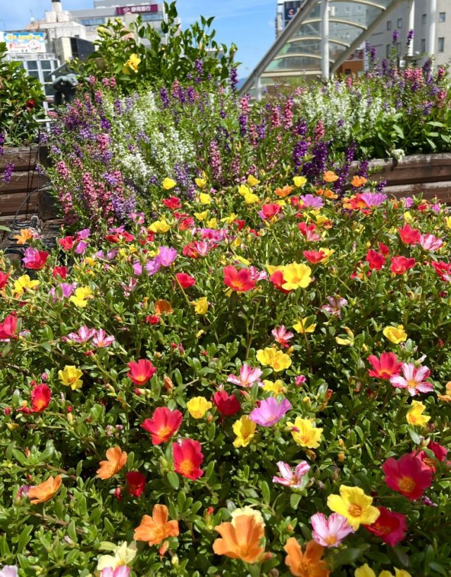豊橋駅前は花盛り。色とりどり。こんな猛暑の中、花たちもがんばっている。私たちの目を楽しませてくれてありがとう〜。