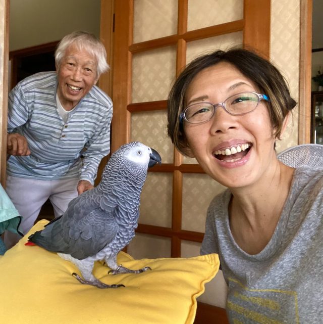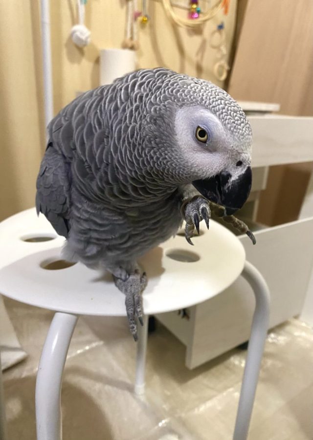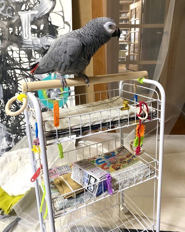 ごきげんで遊び始める。なんて元気なのか〜。さすが一生5歳児。エネルギーの塊。国際移動のストレスでもっとボロボロになっているかと思いきや、信じられないほど元気。羽もつやつや。