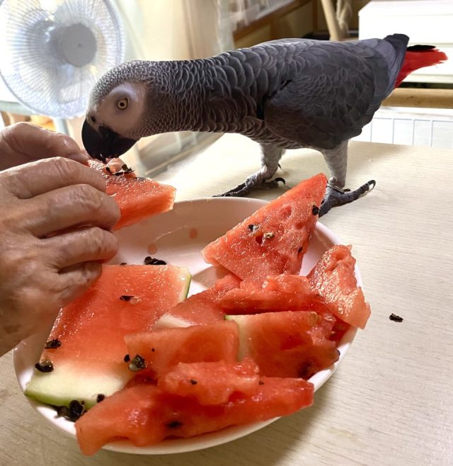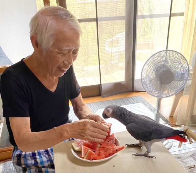 さっそく食事係の父が、スイカをココのもとに運ぶ。「おいしいね」「ぷぷぷっ」。幸せそうな2人。を相手に「アーチェリー教室がどんなに楽しかったか」を、無理やり聞かせる。