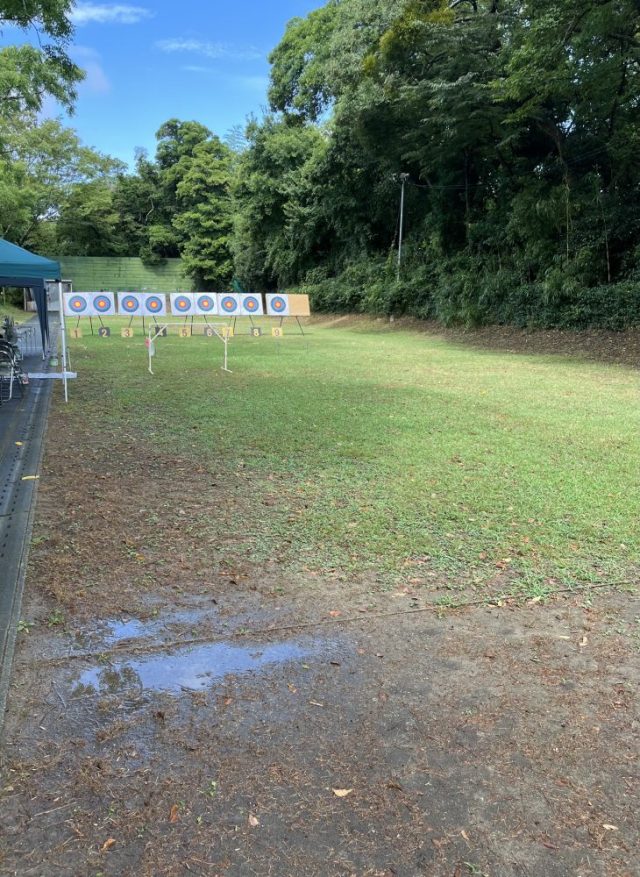 うおーーーっし。弓を手に、自分の番号の立ち位置に立つ。体を半身にして、的を確認。左手で支える弓の重さ、矢を引いた時の手応え、矢を放つ瞬間の衝動・・・