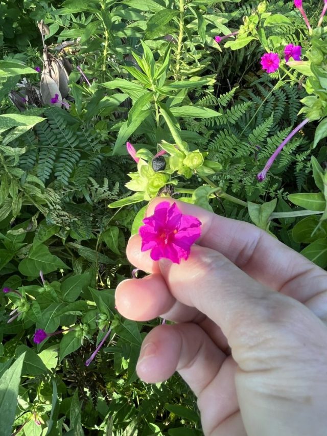オシロイバナの黒い種があちこちに。そっと3粒ほどいただく。思えば小学校の帰り道、夢中になって種をとり、そこらじゅうにまいていた。あのオシロイバナは育ったのだろうか。