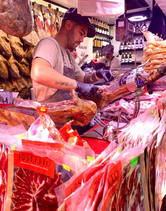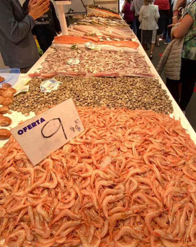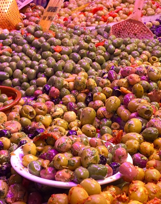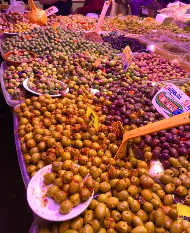 オリーブの実が食べたい。フルーツが、魚介類が、チーズが、生ハムが。一気に湧き上がる食欲。市場内にあるバルは、朝からビールやワイン片手に、魚介類をつまむ人々で大にぎわい。