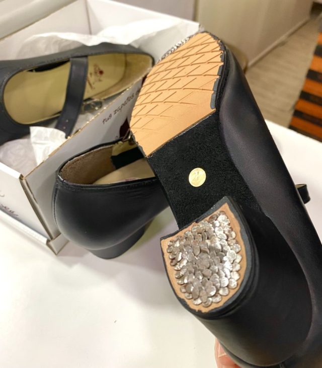 これでダンス教室へも顔を出せそう。リハビリ中だけど、そうっとなら踊れるはず。フラメンコ靴は音が出るように、かかとやつま先に「釘」が打ち込まれている。