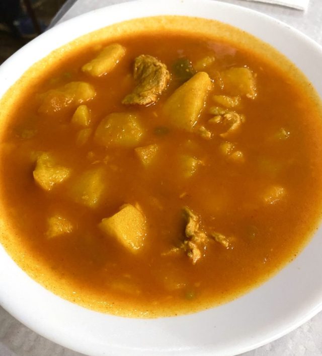 至福の時。熱々の「ジャガイモと肉のスープ」も絶品。見た目は地味だけど、この素朴な味わいがいいんだよね〜。