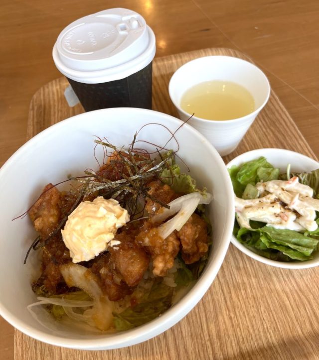 唐揚げ丼ランチ・チーズケーキ&紅茶付き。おいし〜。ひとりのんびりクールダウン。なんだか贅沢な時間。