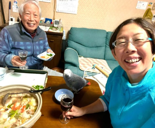 夜は3人、鍋を囲んでワインで乾杯。熱々がおいしい〜。ココにとっては初めての日本の冬。うまく順応できるといいな。いよいよ鍋やシチューの季節。次回はセロリを買ってこよう。