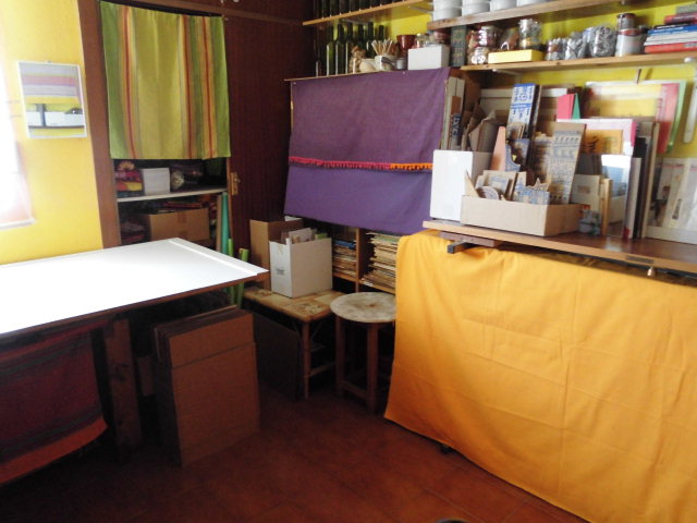 左の白いテーブルみたいなのは、ゴミ捨て場から拾ってきた「ドア」です(笑)