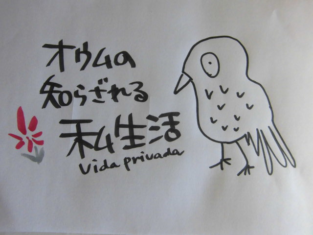 知らざれるオウムの私生活 オウムと遊ぶルイス 2015-08-24 momoquimidori コメントする バルセロナからやったきたベラの親友ルイスが朝から晩までオウムと話をしている。オウム語で(笑) 「ふふーいっ、プ~」「ぐげげげっ」「ほほーう(鳩のマネ)」 ルイスがまねして応えてあげるのでまるで二羽のオウムがいるよう。平和な風景だ~。 そんな幸せな二人を記念してこの絵を贈ります。 ルイス&ベラの話はまた来週写真つきで紹介しましょう。「まったくこの二人は・・・」の連続の4日間でした。はぁあ~。 2015-08-24 momoquimidori コメントする