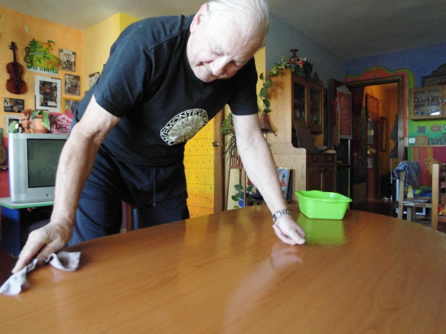 それでも、自分が発見した板を、うれしそうに水拭きしている。