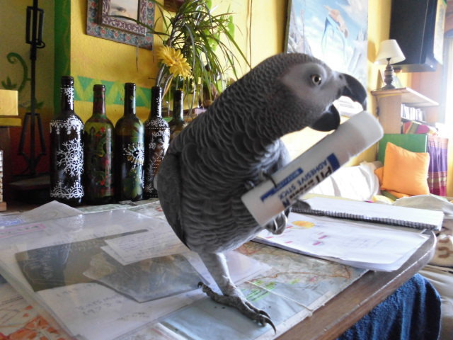 知らざれるオウムの私生活 机の上を、お散歩! 2014-06-20 momoquimidori コメントする 「知らざれるオウムの私生活」今日は「机の上をお散歩」を紹介します。 地図を見ていたらさっそく飛んで来たオウム。机の上にあるものにはすぐに興味を示す。 紙があれば破りペンがあれば壊しのりがあれば・・・うーむ、キャップをはずそうとしてますね。困ったものだ。ちなみにこのスティックのりは日本で買ってきました。スペインのはくっつきが悪く役立たずなので。さすがメイドインジャパン!キャップを開けるのに15分もかける情熱。さすが、一生5歳児。 2014-06-20 momoquimidori コメントする