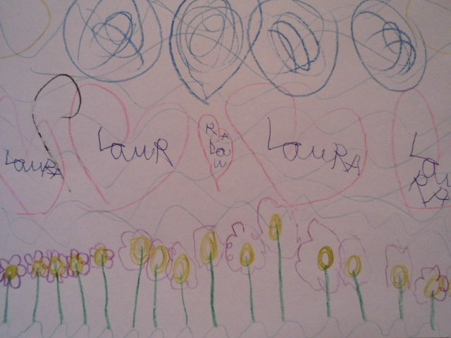 もものピアノレッスン 子どもたちの絵コーナー 2014-08-02 momoquimidori コメントする 「もものピアノレッスン」今日は、子どもたちがプレゼントしてくれた絵を紹介します。 ピアノ室の壁には2メートル四方のコルク板が取りつけてあります。そこに資料やメモをぽちぽち刺してあるのですがいつからかその一角を子どもたちが使い出し「ギャラリー」にしてしまいました。 みんな個性があって色とりどり、楽しそう~。左上の絵は「鳥」ですが手渡してくれるとき「ピカソ風に描いてみた」と言っていました(笑) 2014-08-02 momoquimidori コメントする