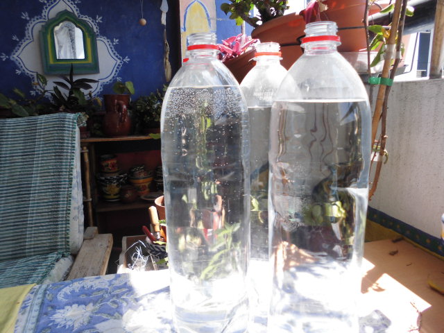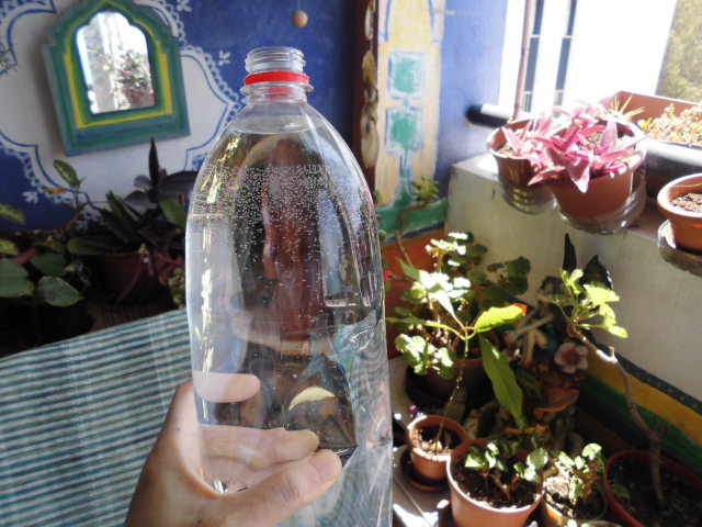 近況2014 ペットボトルでお湯シャワー 2014-08-27 momoquimidori コメントする 今日は「ペットボトルでお湯シャワー」を紹介します。 水を入れてテラスの日なたに出しておくだけで熱湯に!すごい。 実は植物に水をやろうとして置きっぱなしにしておいたのが・・・気づいたら熱湯になっていました(笑)。そう!「もの忘れ」は発見の母。 おかげで、一日二回このペットボトルでお湯シャワーしています。「太陽熱で温めたのだ!」と思うと、感動だなぁ。 2014-08-27 momoquimidori コメントする