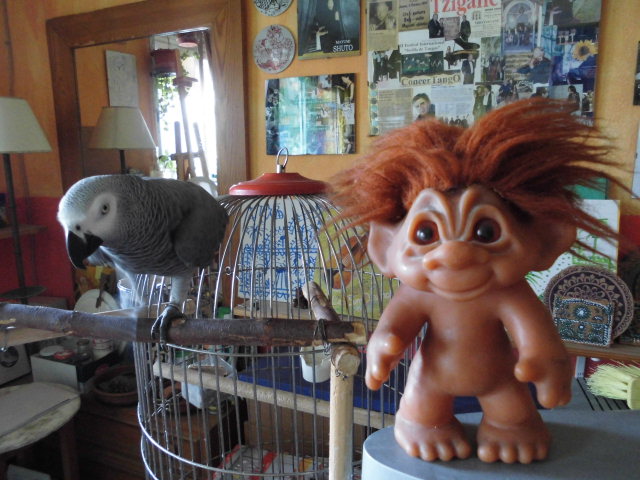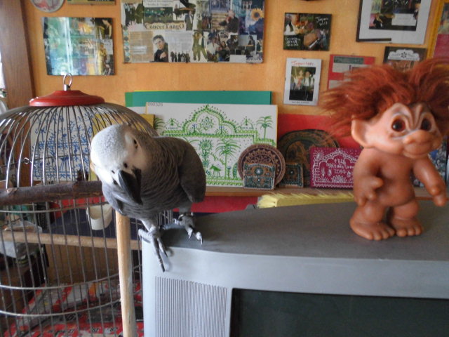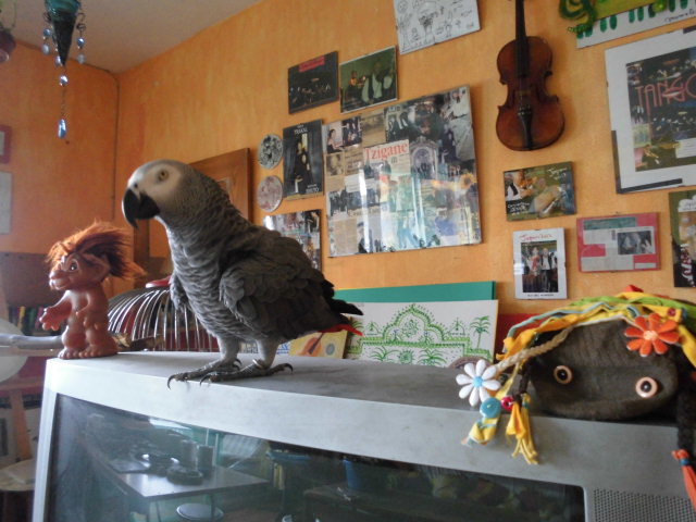 知らざれるオウムの私生活 テレビの上に乗りたいオウム 2014-09-25 momoquimidori コメントする 「知らざれるオウムの私生活」今日は「テレビの上に乗りたいオウム」を紹介します。 テレビの上に置かれているスウェーデンの人形。実はテレビを守る番人。この目と髪の毛がこわいらしい(笑) 人形を動かすとほら、このとおり。すぐにテレビの上に! うちのテレビはまだ箱型。中古のもらいもの。最近ときどき音が出なくなるので映画などは「読唇術」で理解する。 靴下人形のココちゃんもふだんはこうしてテレビの番人をする。 でも、人形たちのまん中でオウム、うれしそう? 2014-09-25 momoquimidori コメントする
