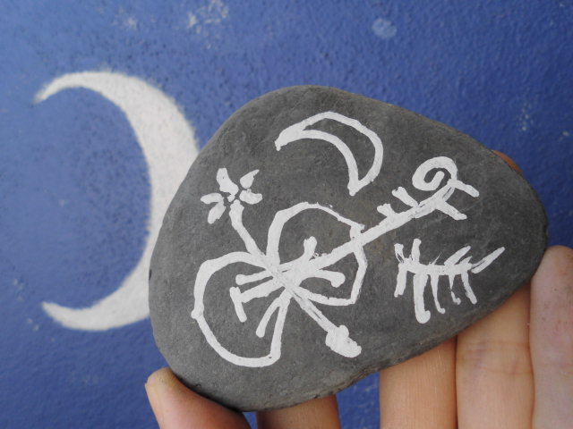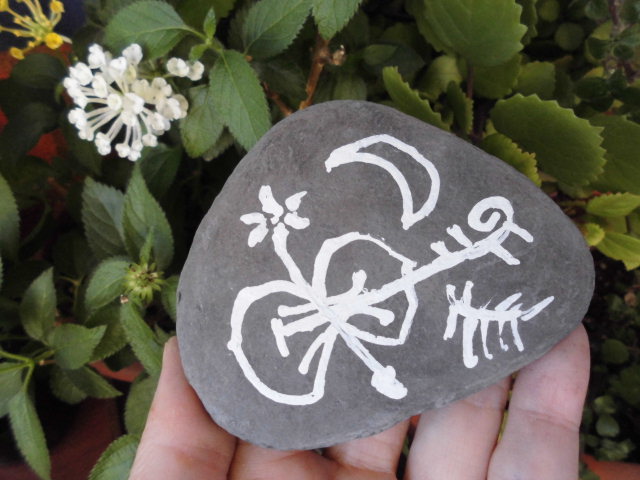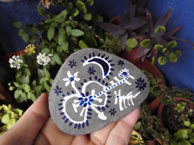 べラへのプレゼント石。このままでも、いいんだけど、せっかくなので、べラの大好きな色「青」を、一色だけ、加えてみることにしました。